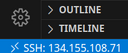 3. After a moment, VS Code will connect to the SSH server and set itself up. After you are connected, you'll see in the status bar which host you are connected to: